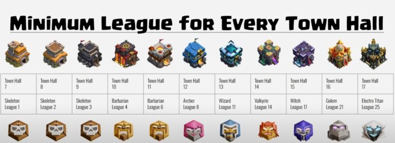 تنزل شما به لیگ های پایین تر تا جایی ادامه پیدا خواهد کرد که به کف لیگ تاون هال خودتون برسید! این یعنی با ارتقای هر لول تاون هال، شما دارای یک حداقلی از لیگ میشید که هر اتفاقی بیوفتد نمیتوانید پایین تر از آن بروید. جدول اطلاعات کف لیگ هر لول تاون هال در تصویر زیر آمده است