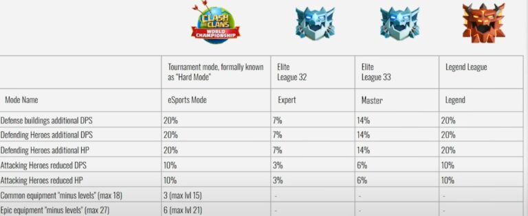 مقدار موارد گفته شده بالا وابسته به لیگ تغییر خواهد کرد و دارای سه نوع Master ، Expert و نهایتا Legent میباشد. (جزییات در تصویر زیر قابل مشاهده هست)